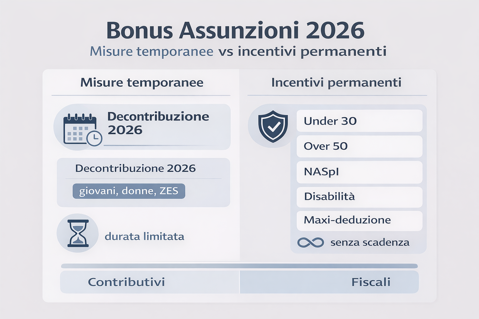 Accanto agli interventi annuali, nel 2026 continuano a produrre effetti gli sgravi sulle assunzioni 2026 di natura strutturale, che non dipendono da rifinanziamenti episodici. Si tratta di misure già integrate nelle politiche del lavoro delle PMI e fondate su presupposti normativi consolidati.